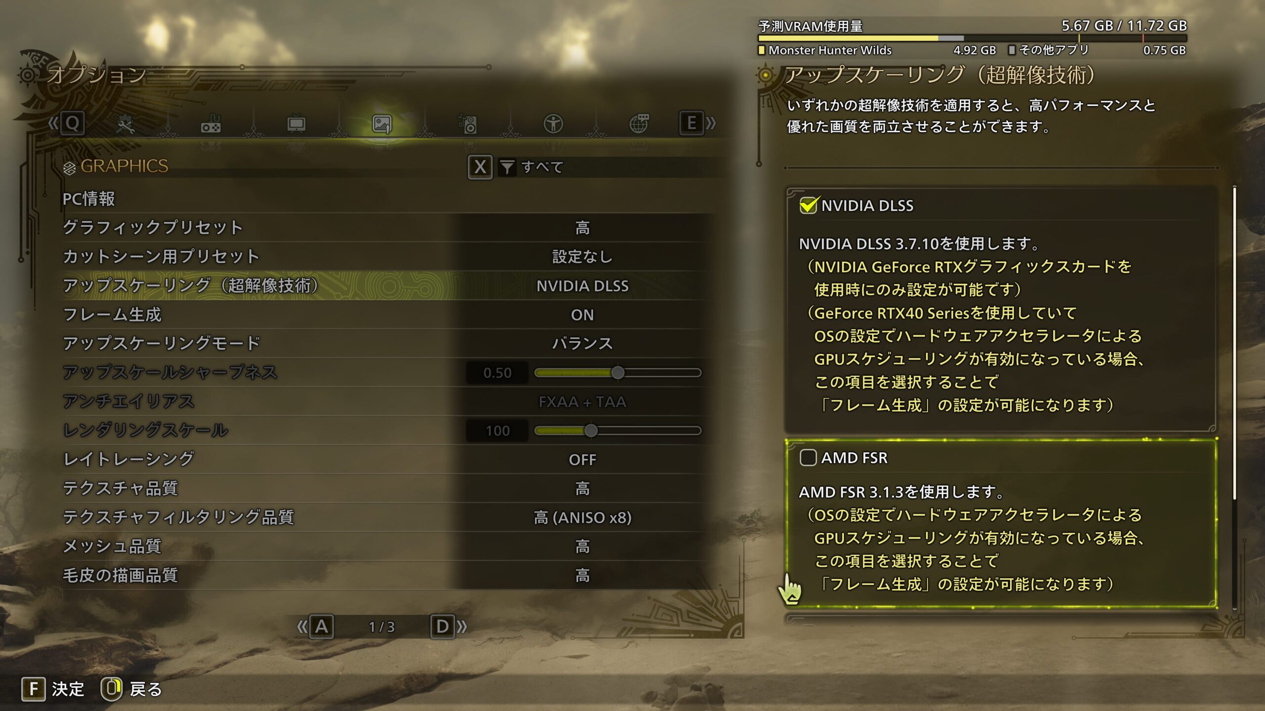 サンブレイク以前はフレームレートや画質の向上が見込めるアップスケーリング・AI補完技術はDLSSのみでしたが、