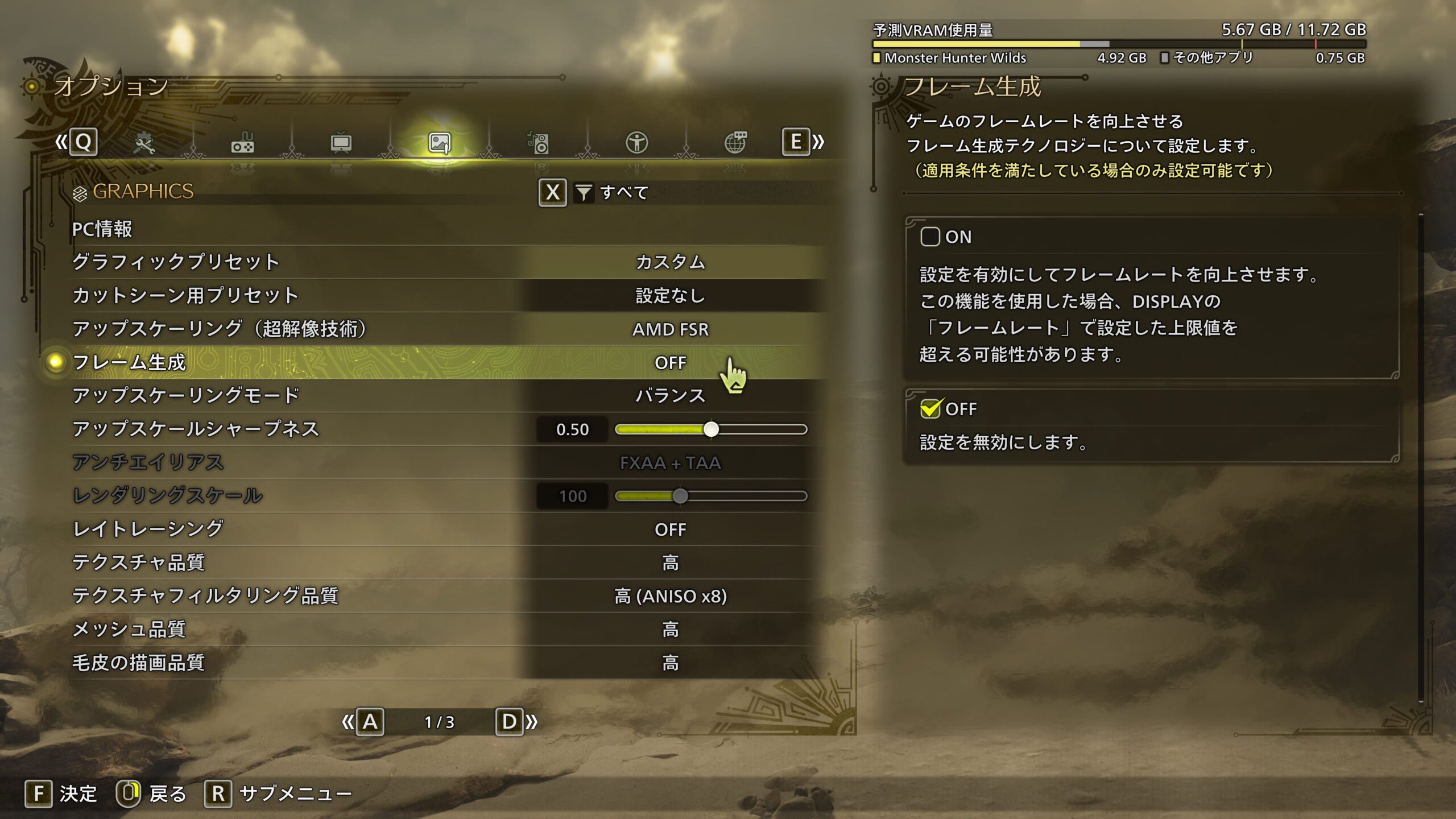 モンスターハンターワイルズのAIフレームレート補完設定
