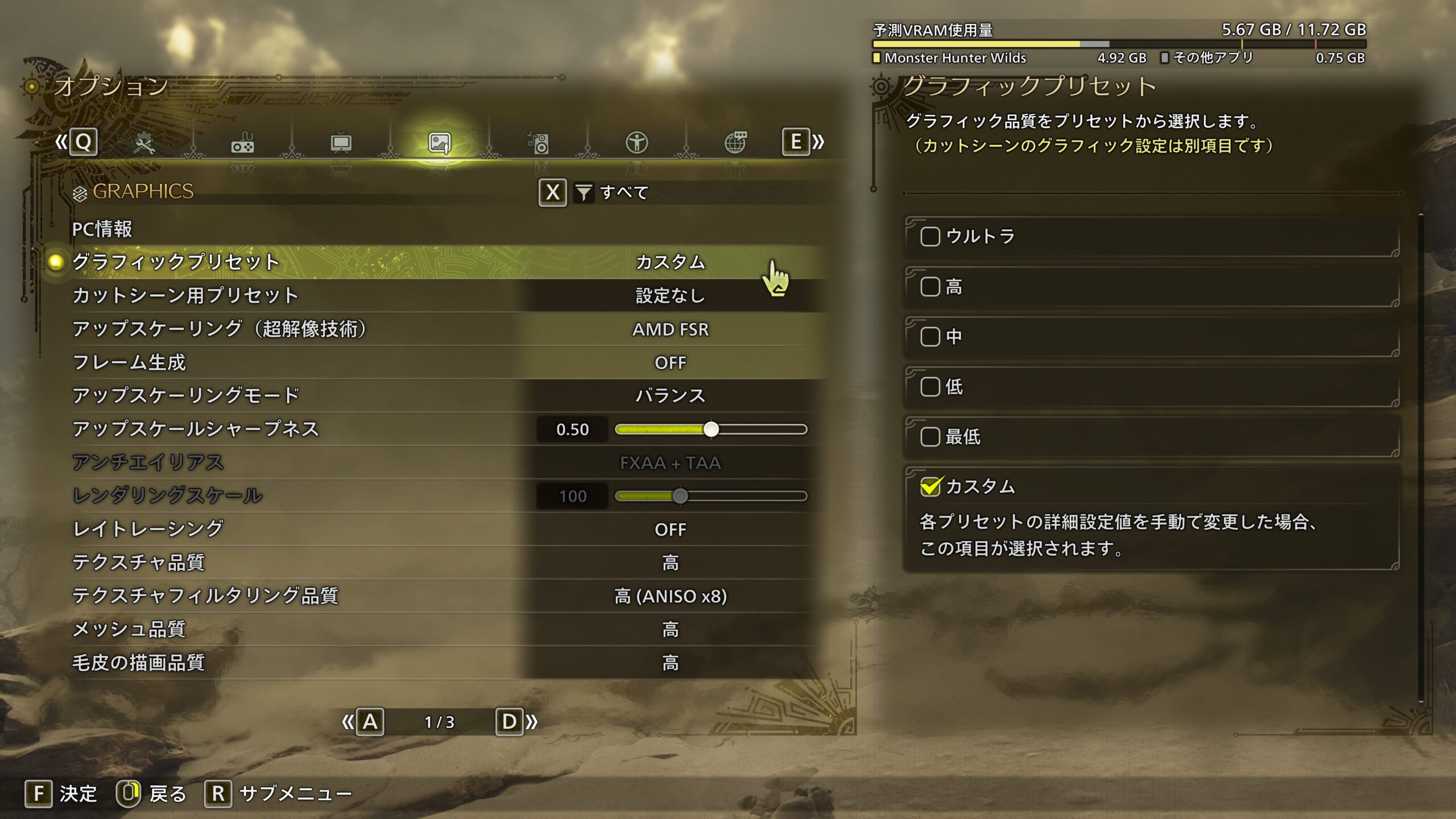 モンスターハンターワイルズのグラフィック詳細設定