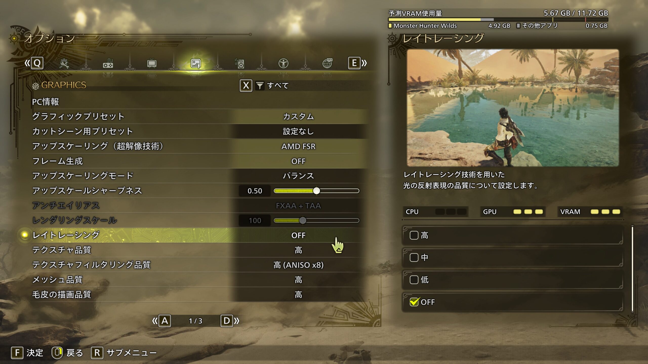 モンスターハンターワイルズのレイトレーシング設定