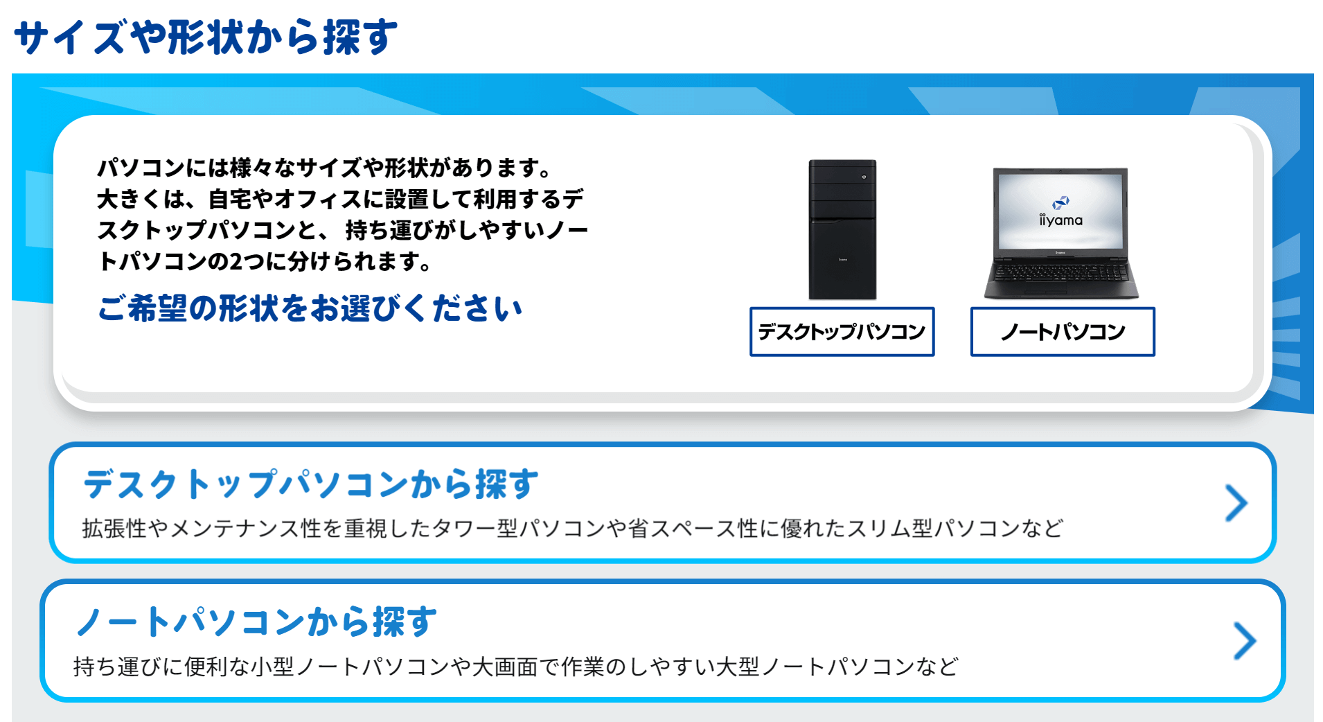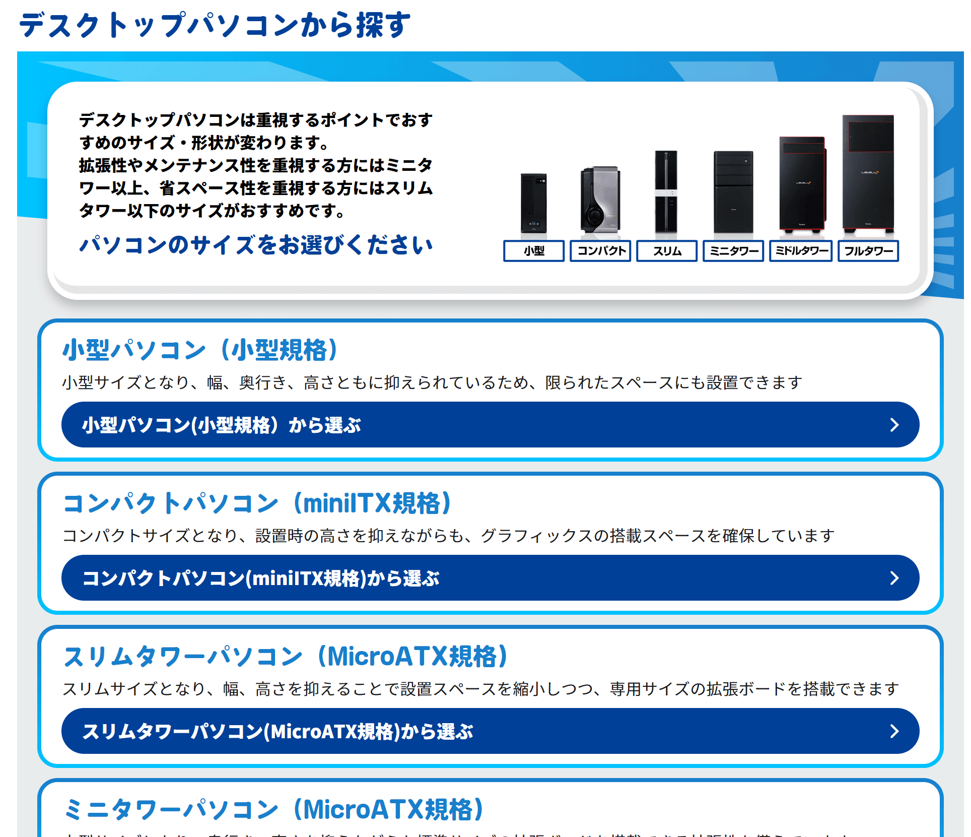 初心者が始めてBTOパソコンを買うには最も利用しやすいメーカーと言えます。