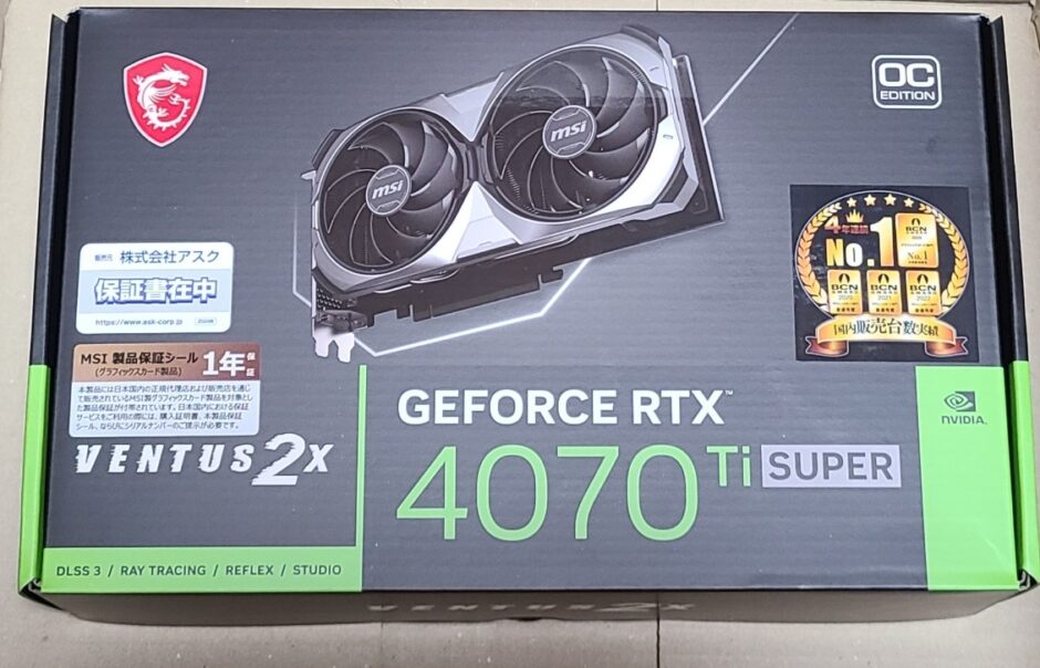 今回使用したのはMSIの定番VENTUS2XシリーズのRTX 4070 Ti SUPERです。