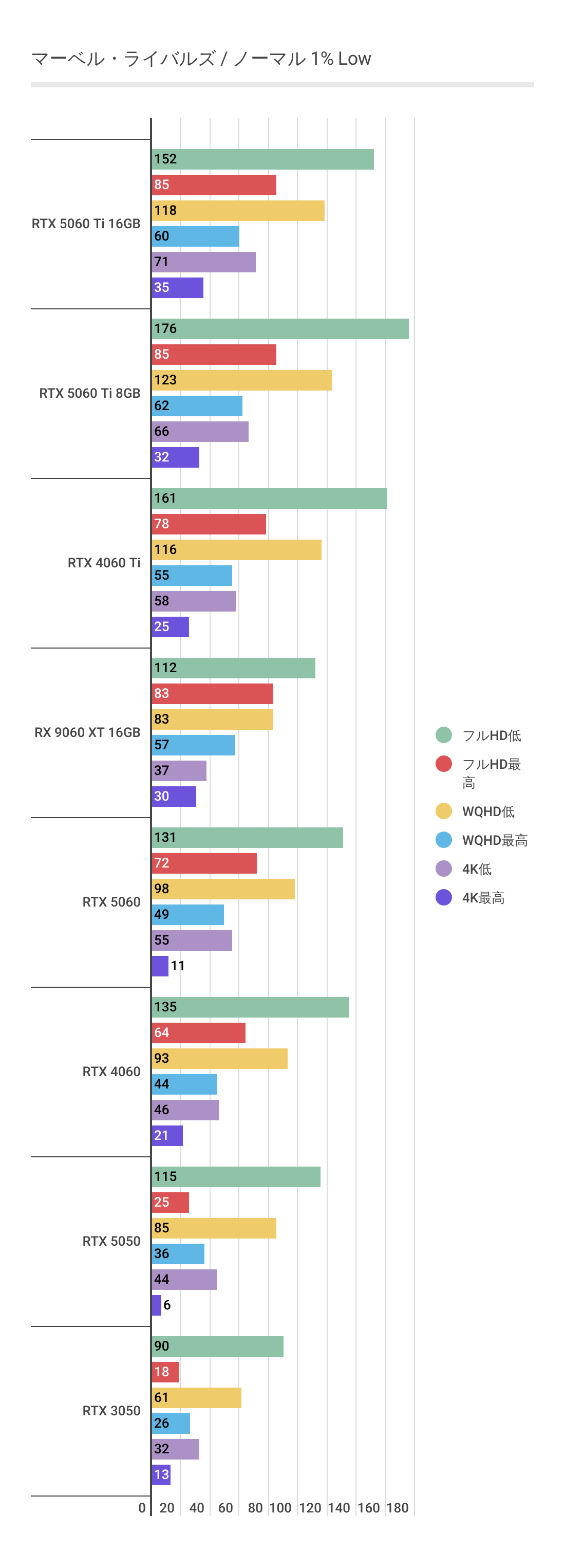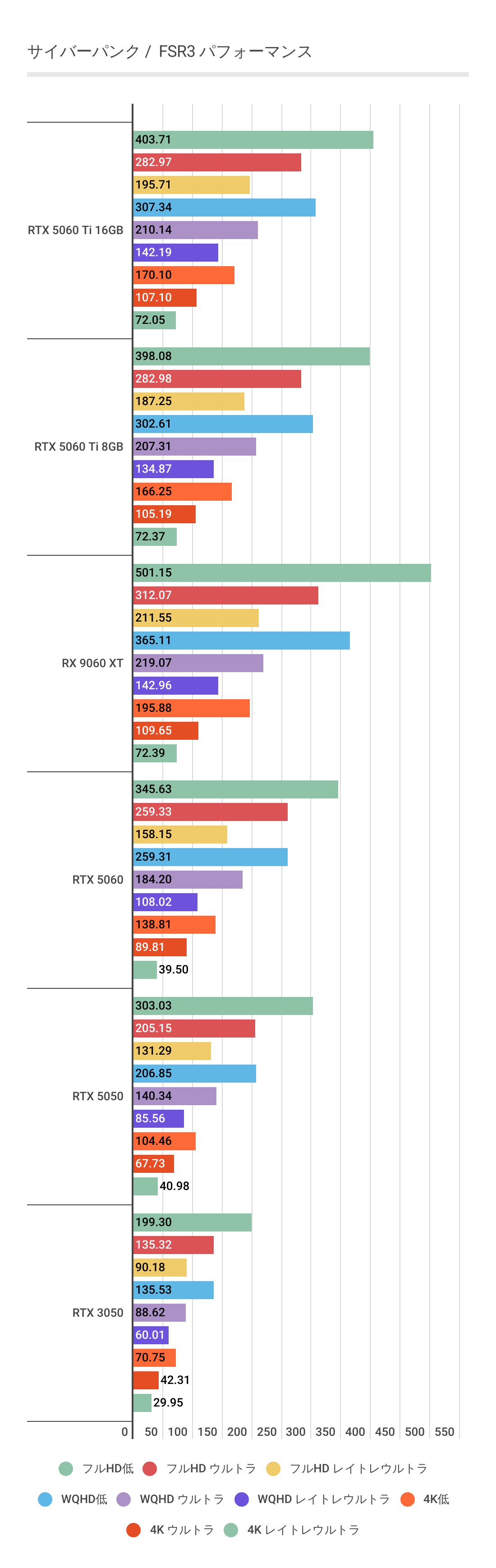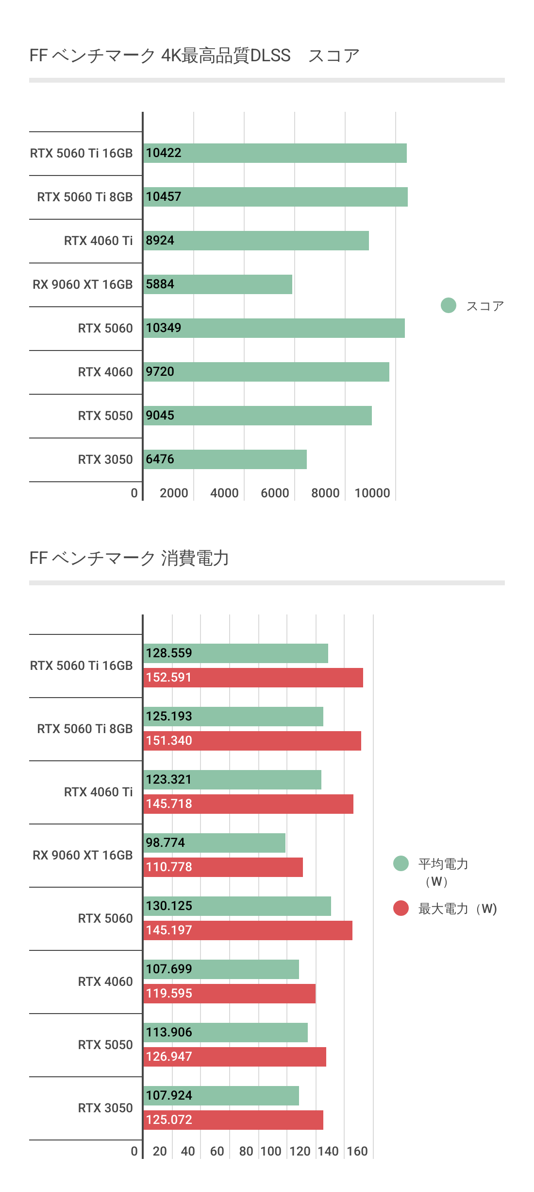 またRTX 4060よりもRTX 5050のほうが若干安定性が高い結果にもなっています。