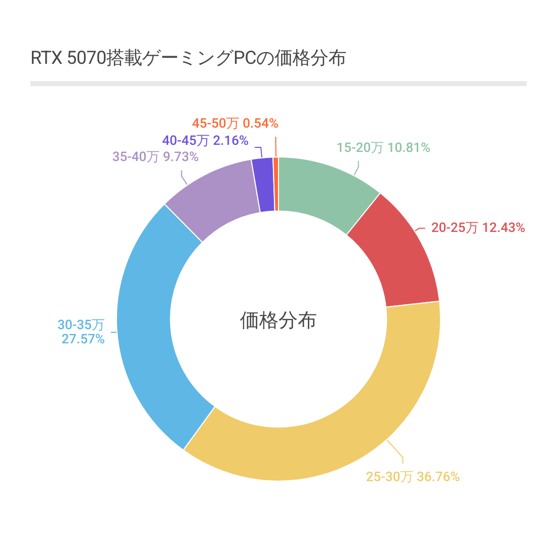 RTX 5070搭載ゲーミングPCの価格分布