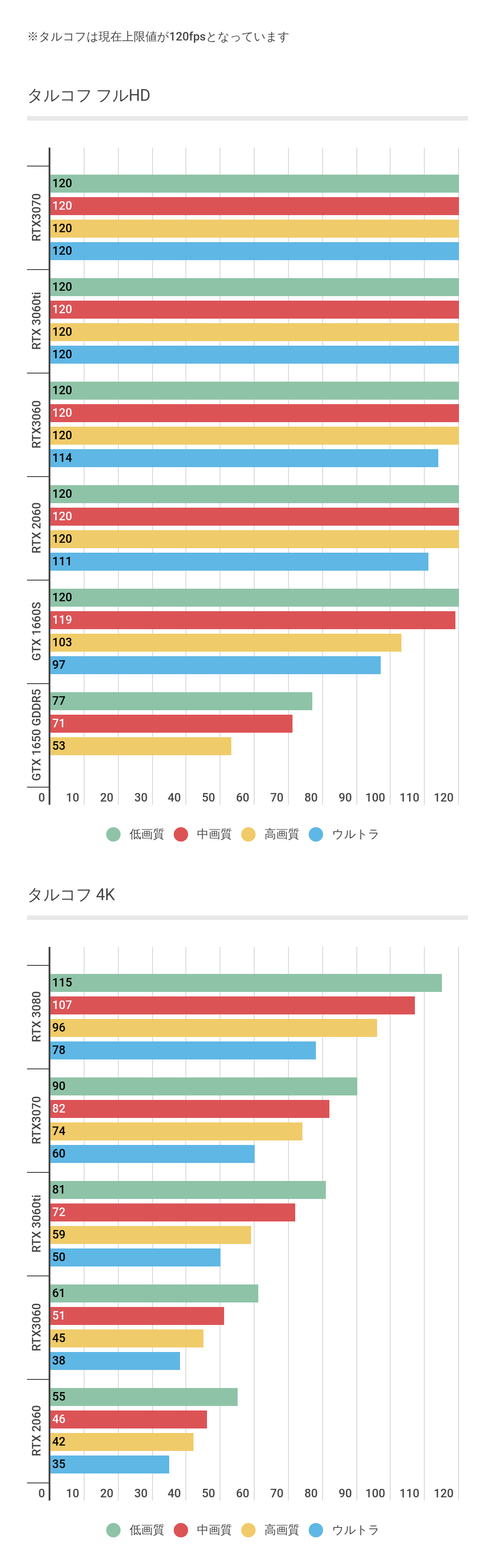 それでもフルHDであれば最高設定60fps以上で遊べます。