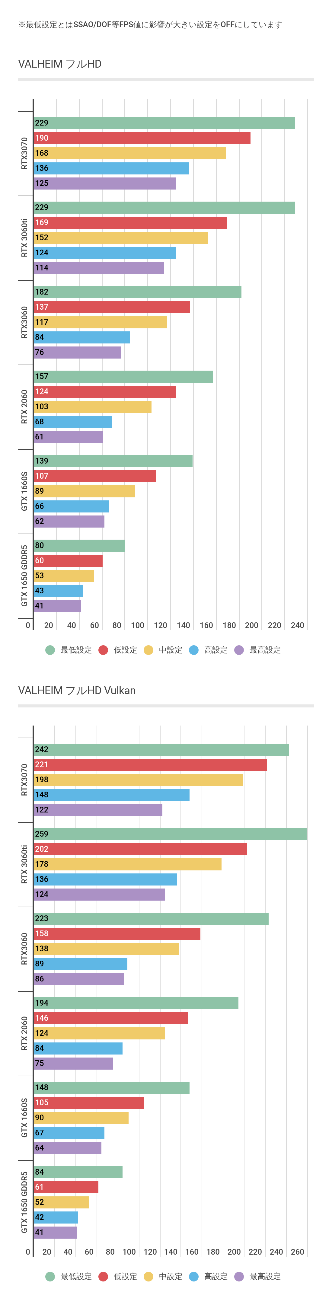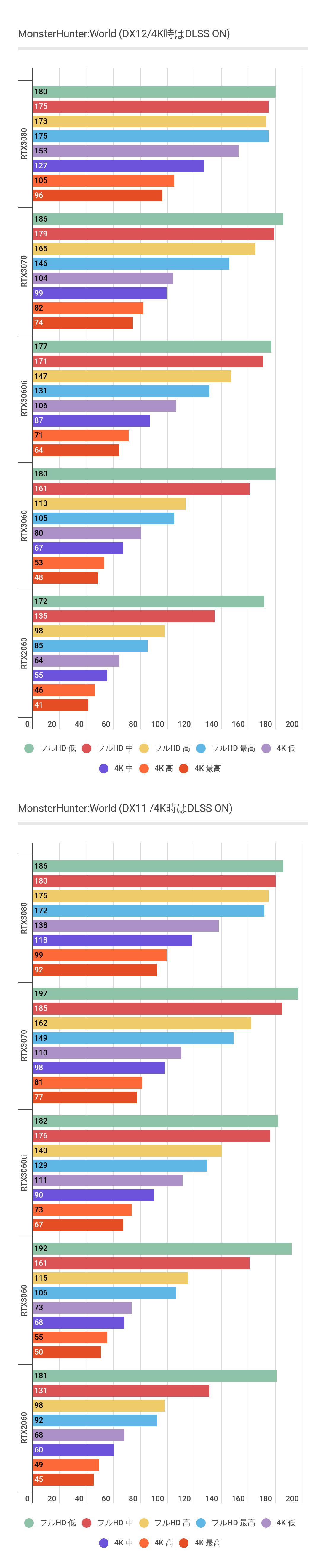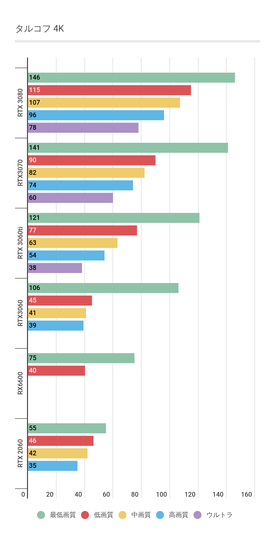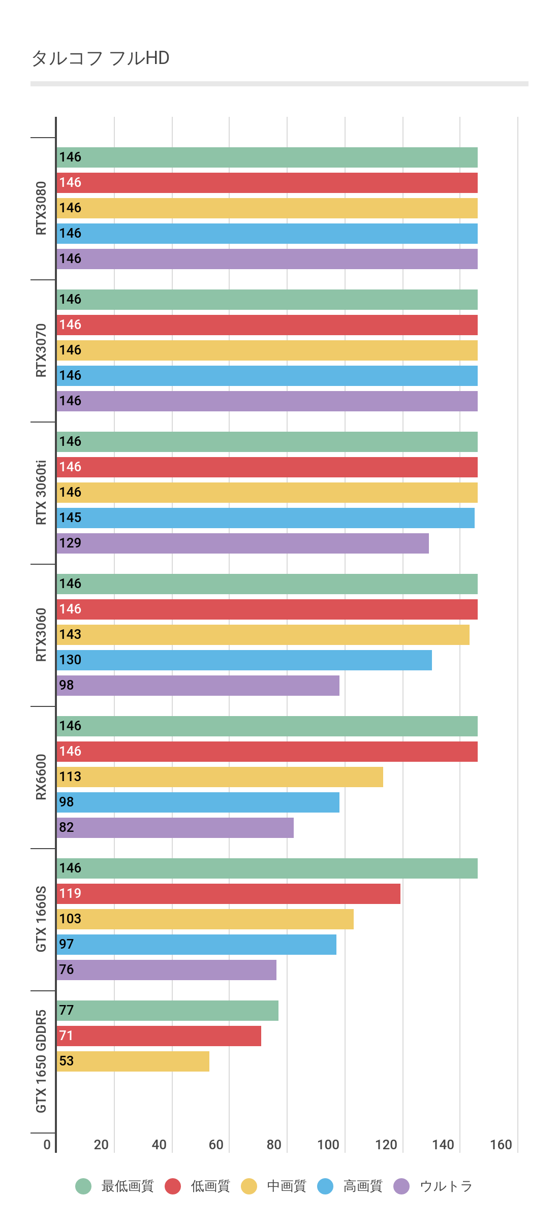 結果的にフルHD低画質ではRTX3060とあまり大差がありません。