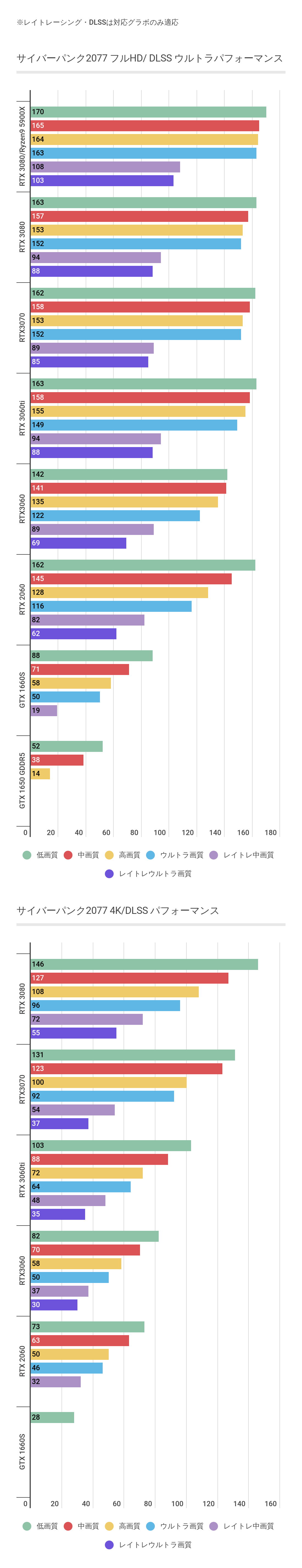 なお上位のRTX3070やRTX3080も検証していますので、気になる方は下記参照ください。