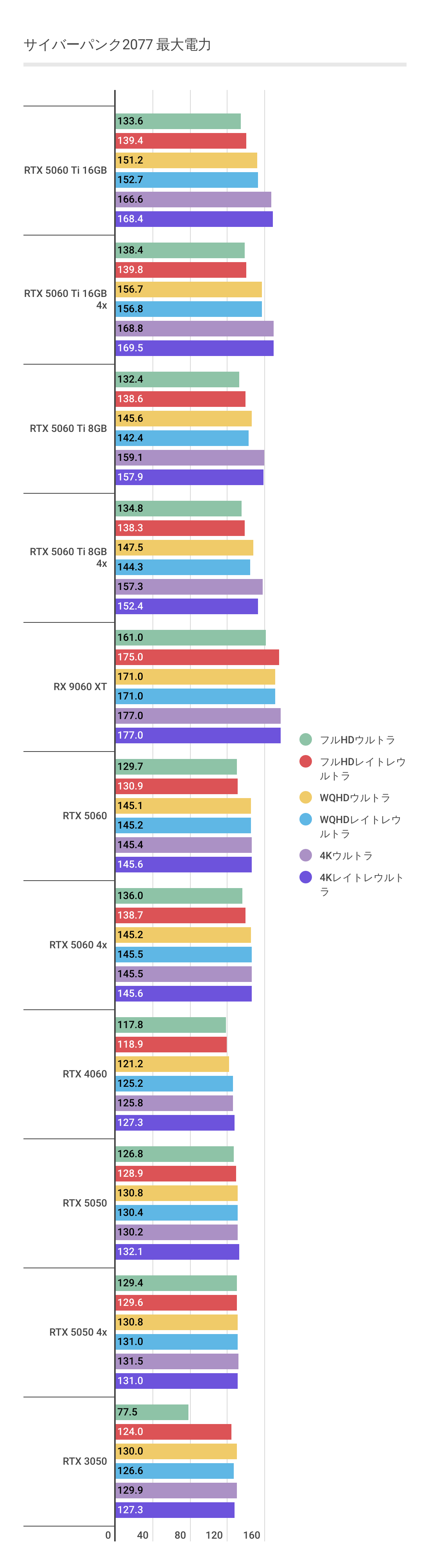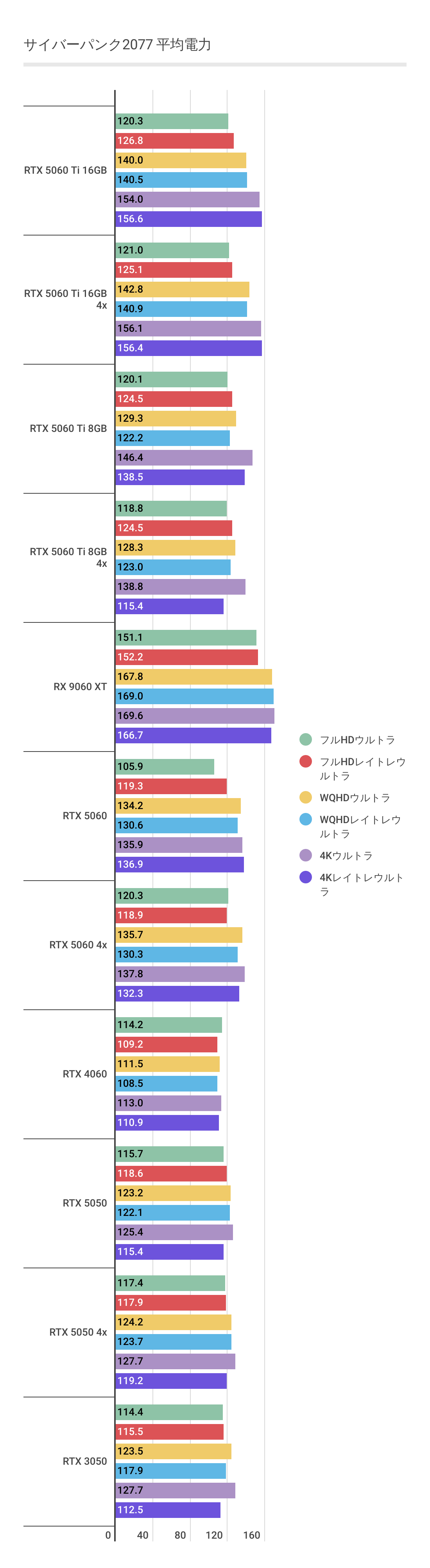 RTX 5060 Ti 16GB | 160.19 | 130.33 | 123.95 | 141.02 | 114.15 | 108.20 | 106.03 | 85.46 | 80.47 |