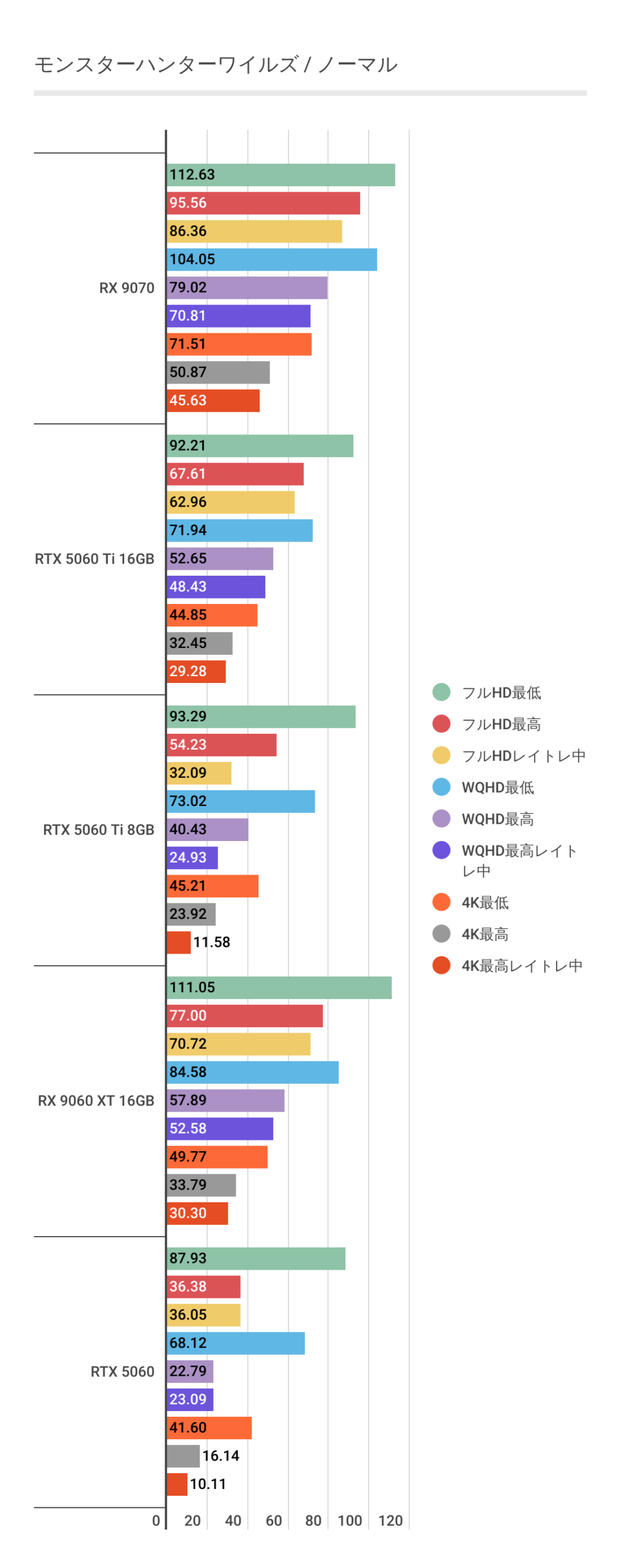 RX 9060 XT 16GB | 111.05 | 77.00 | 70.72 | 84.58 | 57.89 | 52.58 | 49.77 | 33.79 | 30.30 |