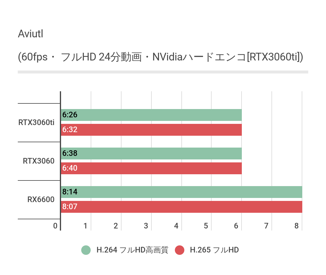 RTX3060に対してフルHDで2~3分、4Kで2分どの遅いエンコード時間です。
