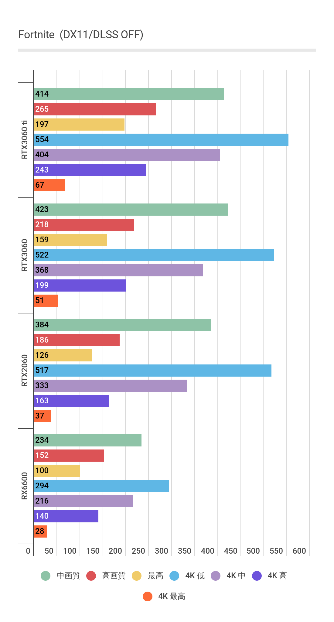 RX6600では中画質で30fpsほど落ちています。
