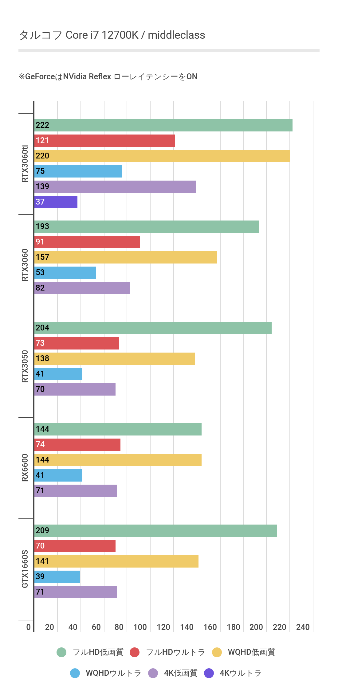 多くのゲームでRTX3060に大差でパフォーマンスが低くなっており、