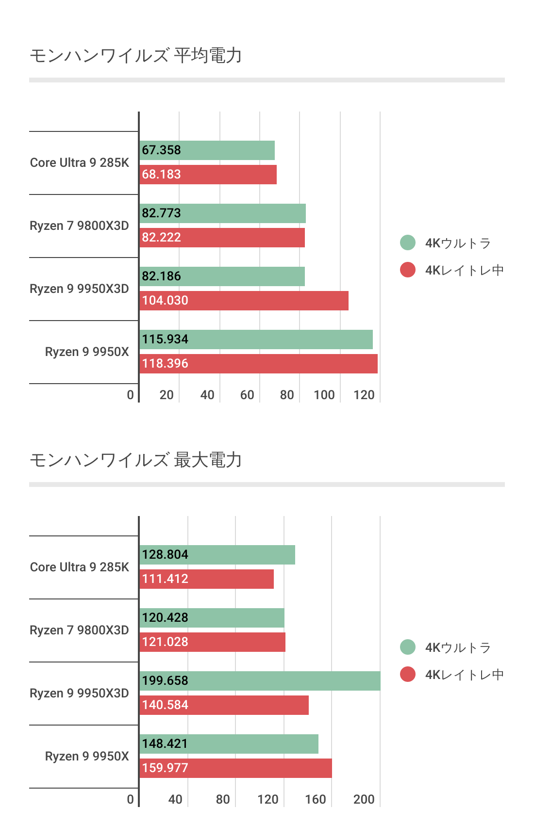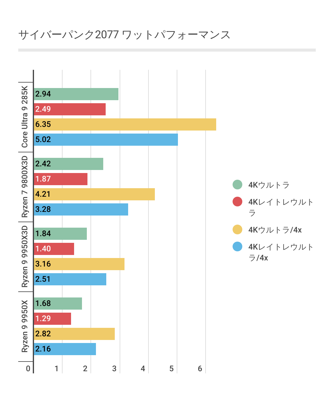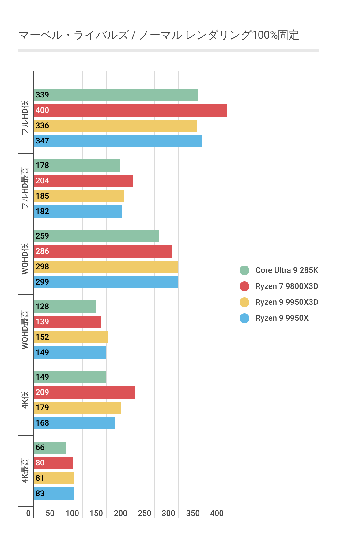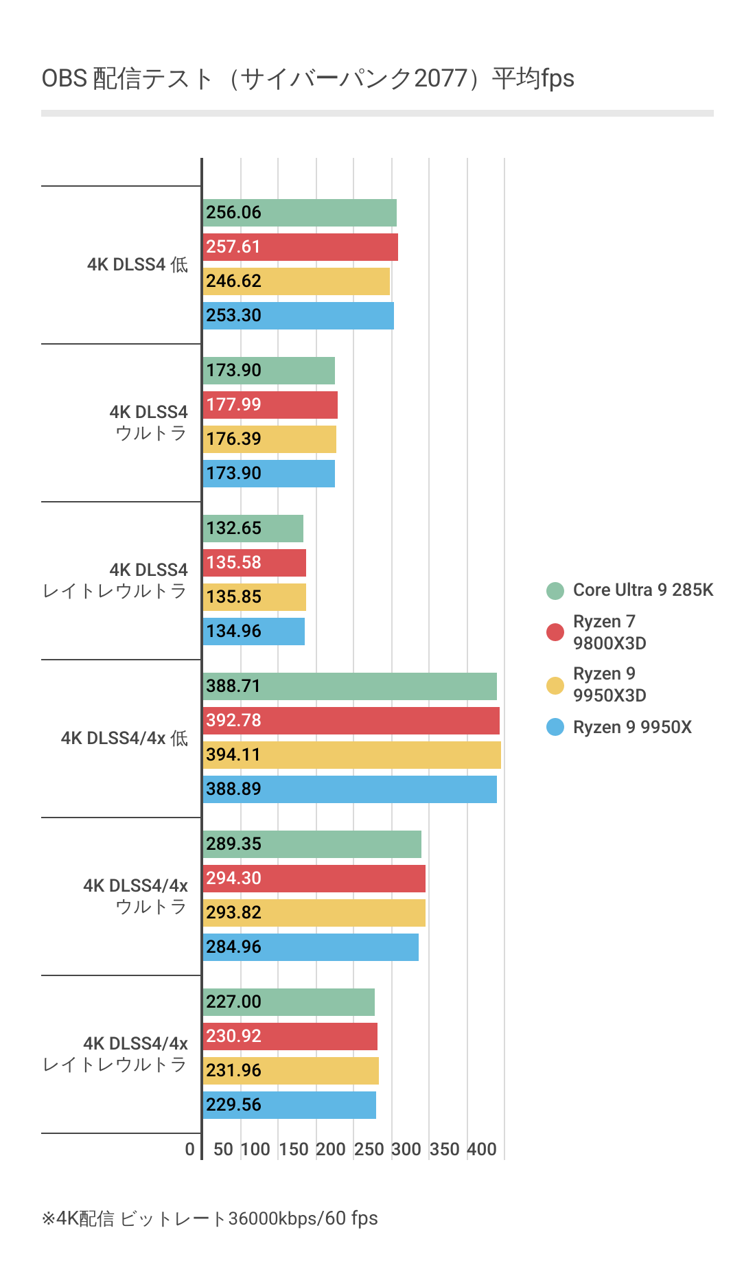 ただCore Ultra 9 285Kには低解像度では優っていますが、4Kになると微差ですが負ける結果。やはり最強とはなりませんでした。