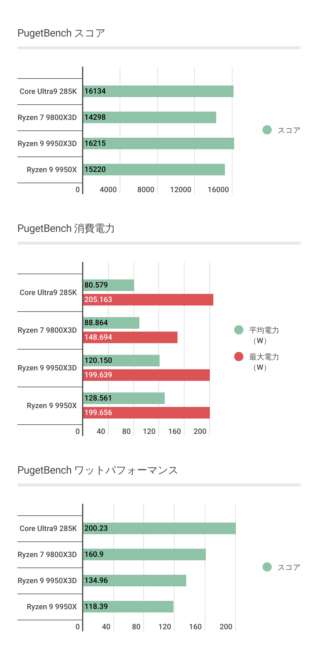 - 消費電力がかなり高く、ワットパフォーマンスは総じて悪い傾向