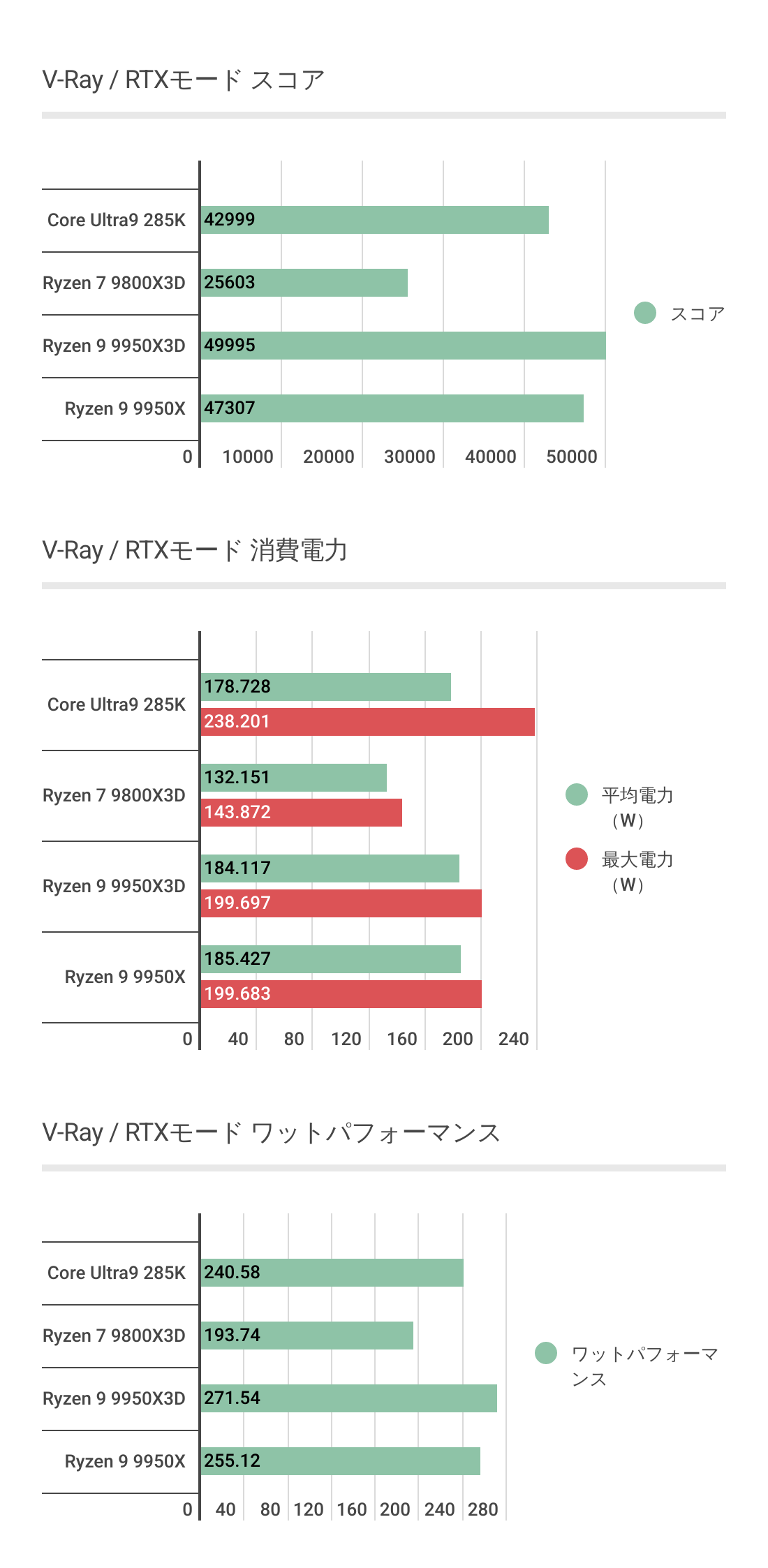 ただCore Ultra 9 285Kも健闘していますし、Ryzen 9 9950Xよりも優秀という感じもしないので一般用途では3D V-cache効果はあまり違いは感じないかもしれません。