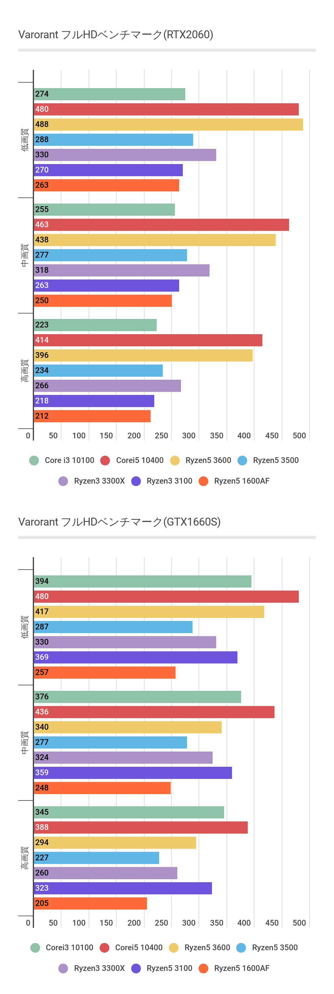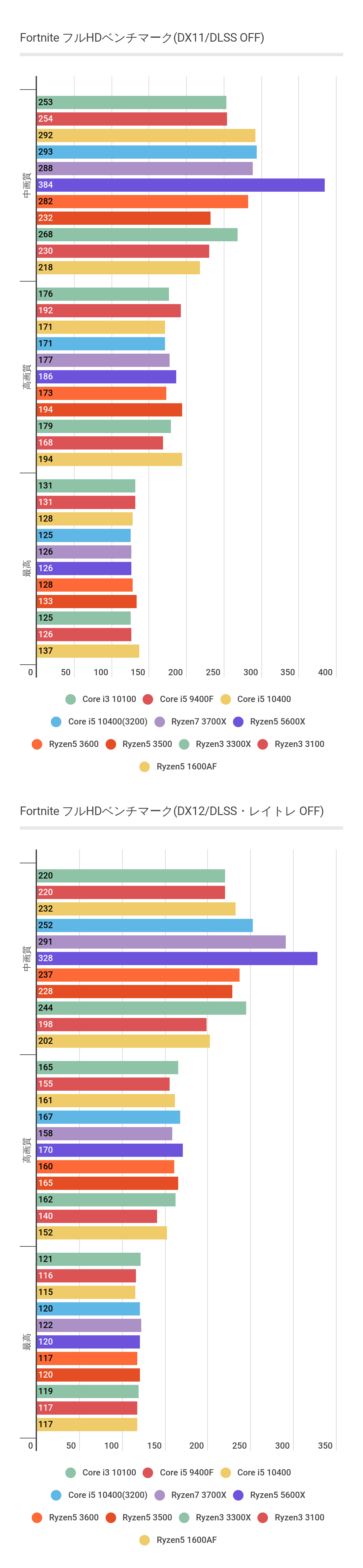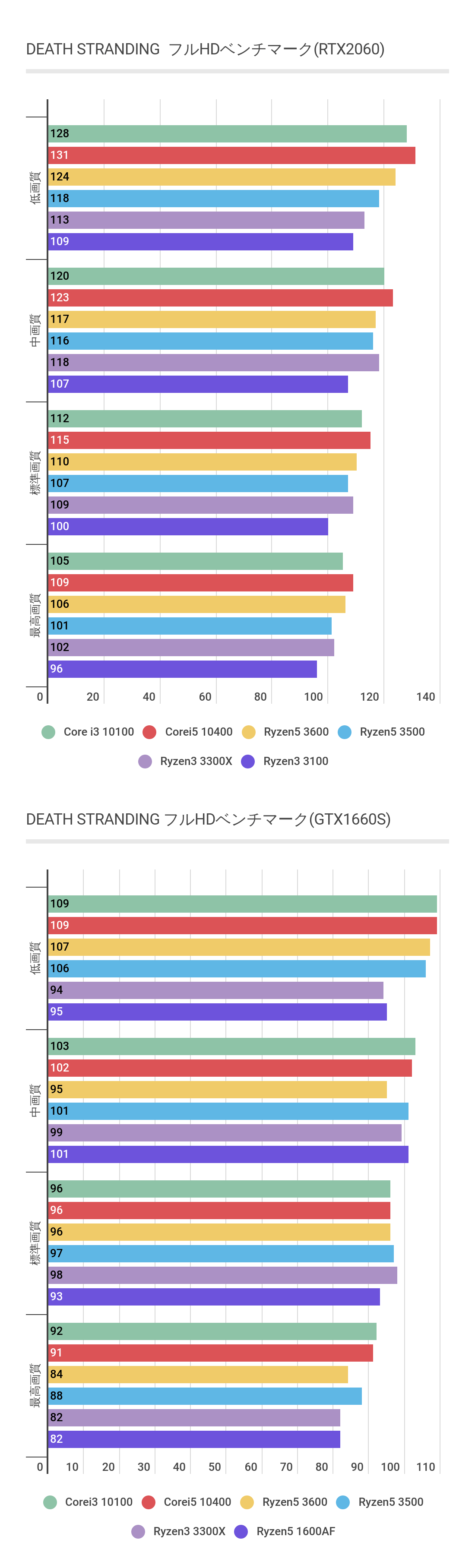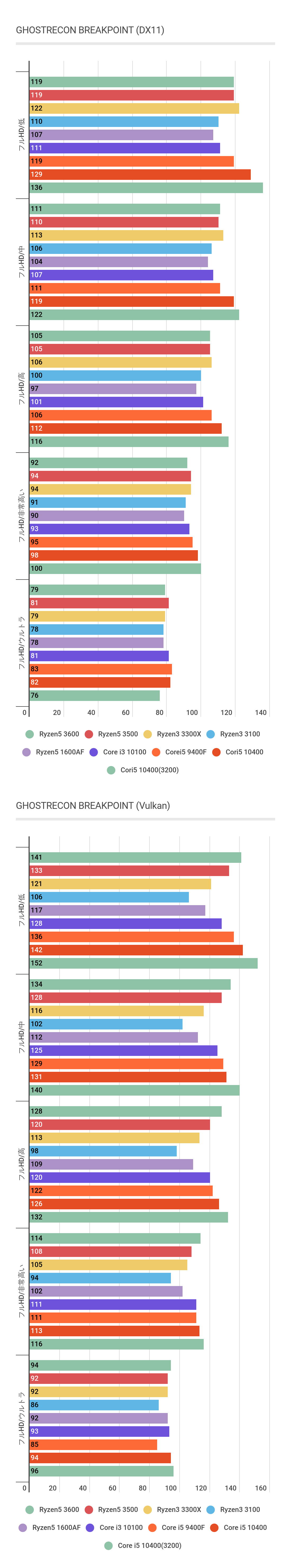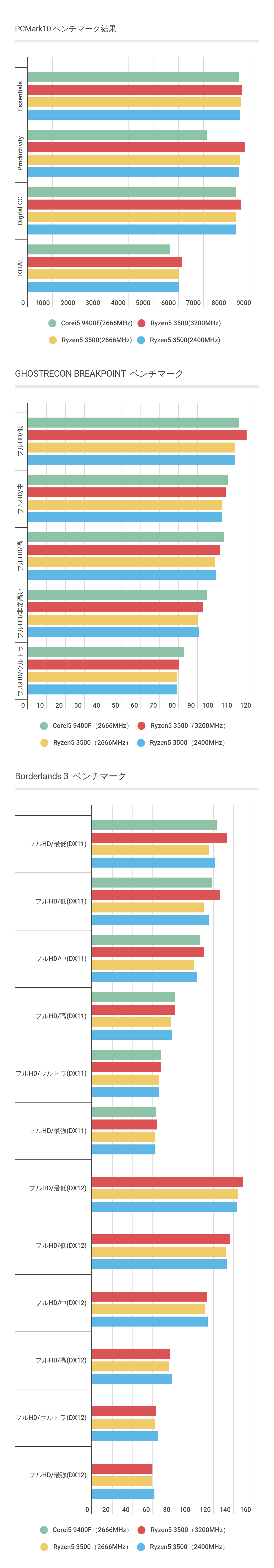 こちらに関してはRyzen5 3500とCore i5 9400Fがほぼ同等という結果になりました。