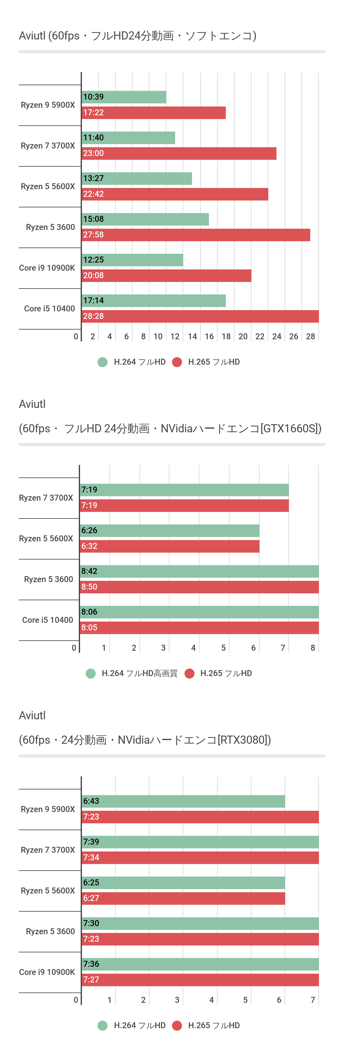 こちらも純粋なCPUパワーが必要なソフトエンコードでは、