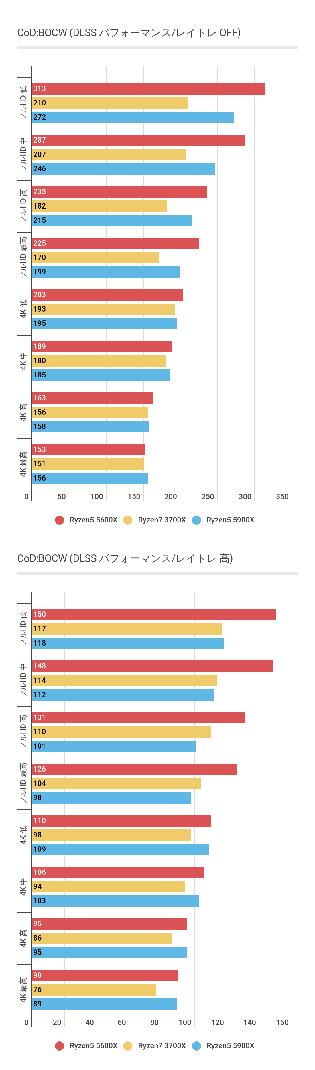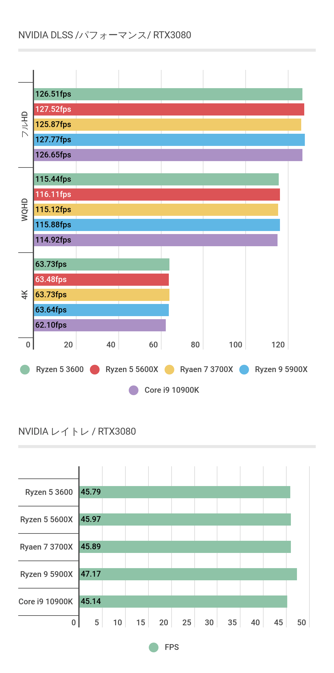 レイトレもDLSSもRyzen 5 5600Xのほうが上という結果になりました。