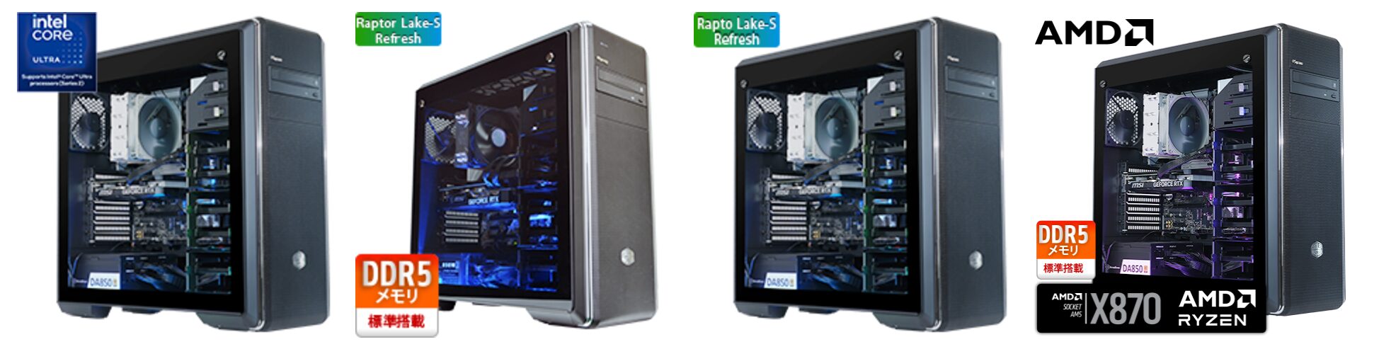 CPUはもちろんIntel最新のUltraシリーズのCPU、AMDも最新のRyzen 9000シリーズを選択でき、