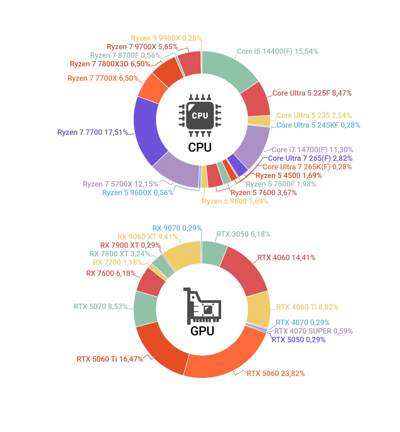 NvidiaならRTX 5060/5060 Ti/5070のミドルレンジ、AMDはRX 9060 XTが最新世代として多くなっています。