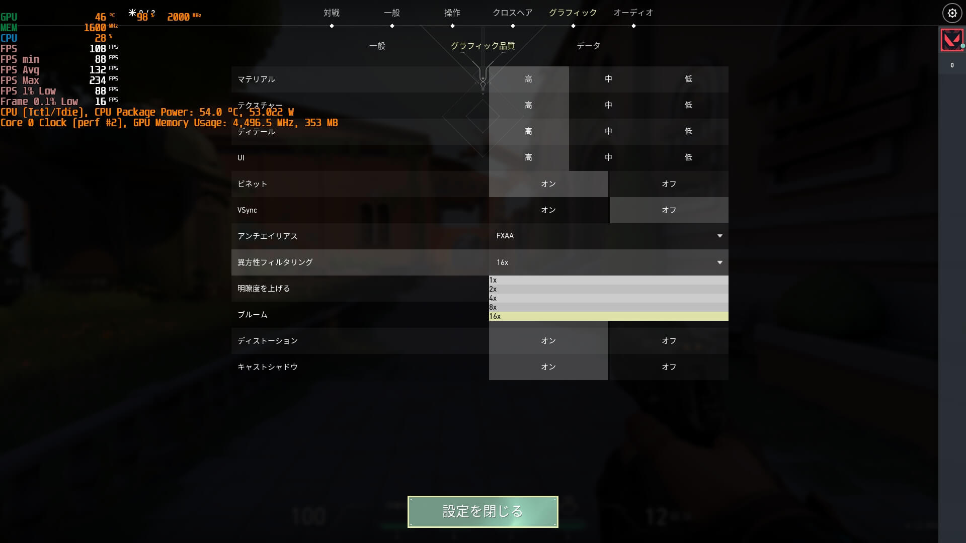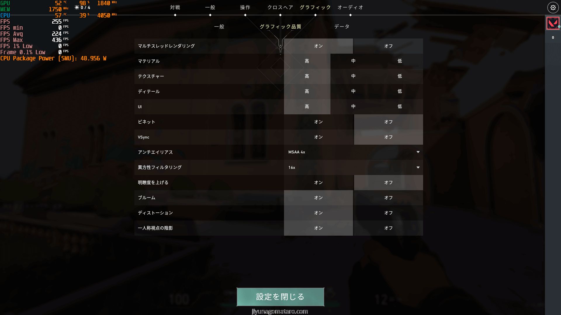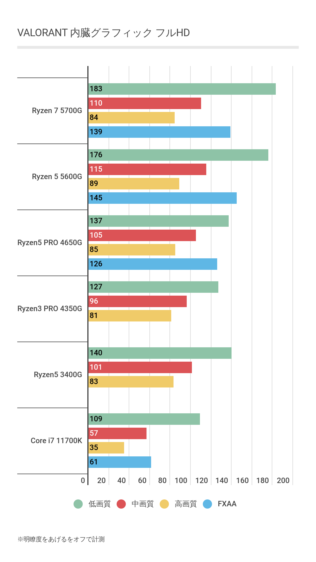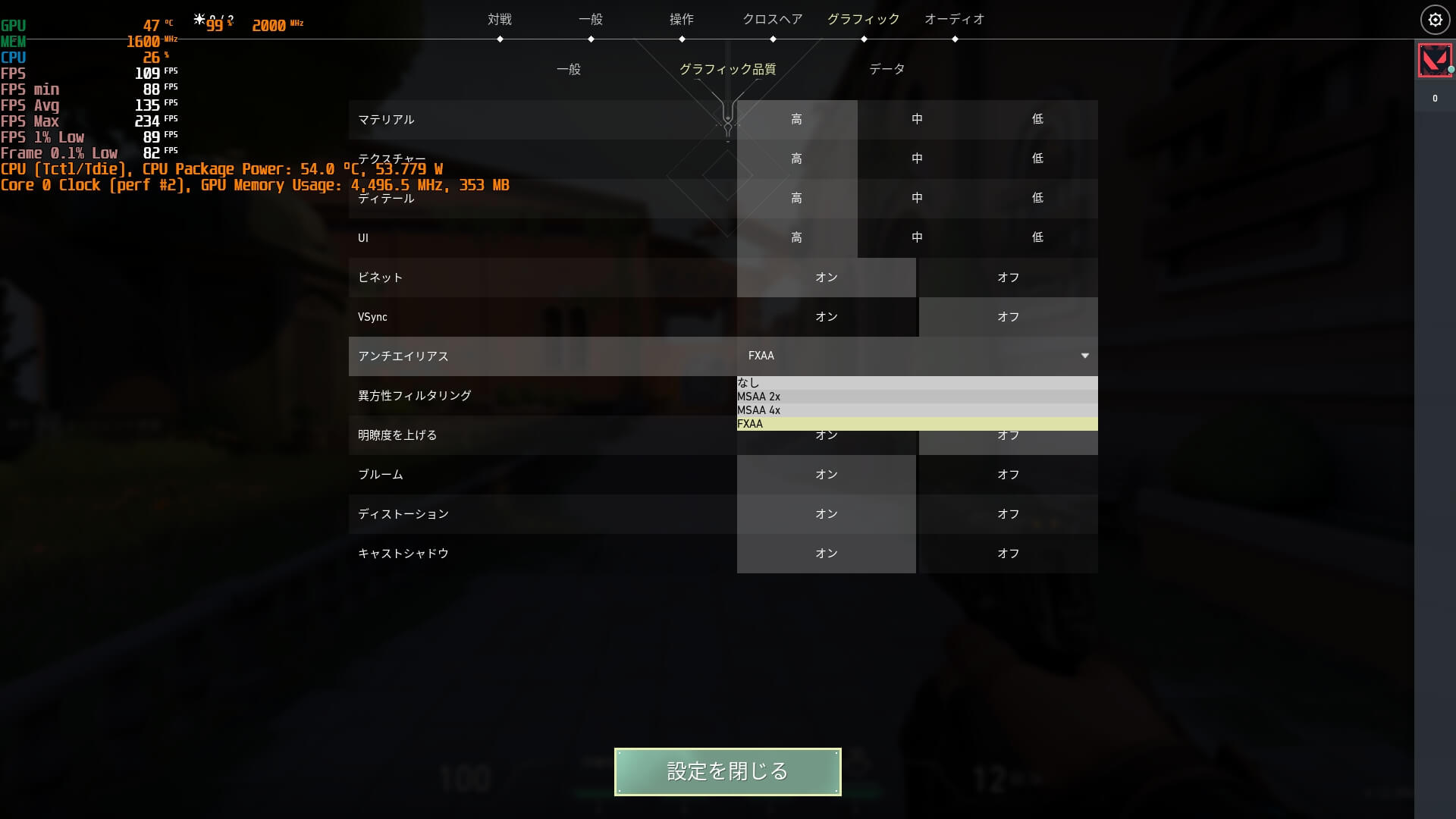 またVALORANTにおいて明瞭度を上げるが場合によって50fps以上変わるケースもあり、