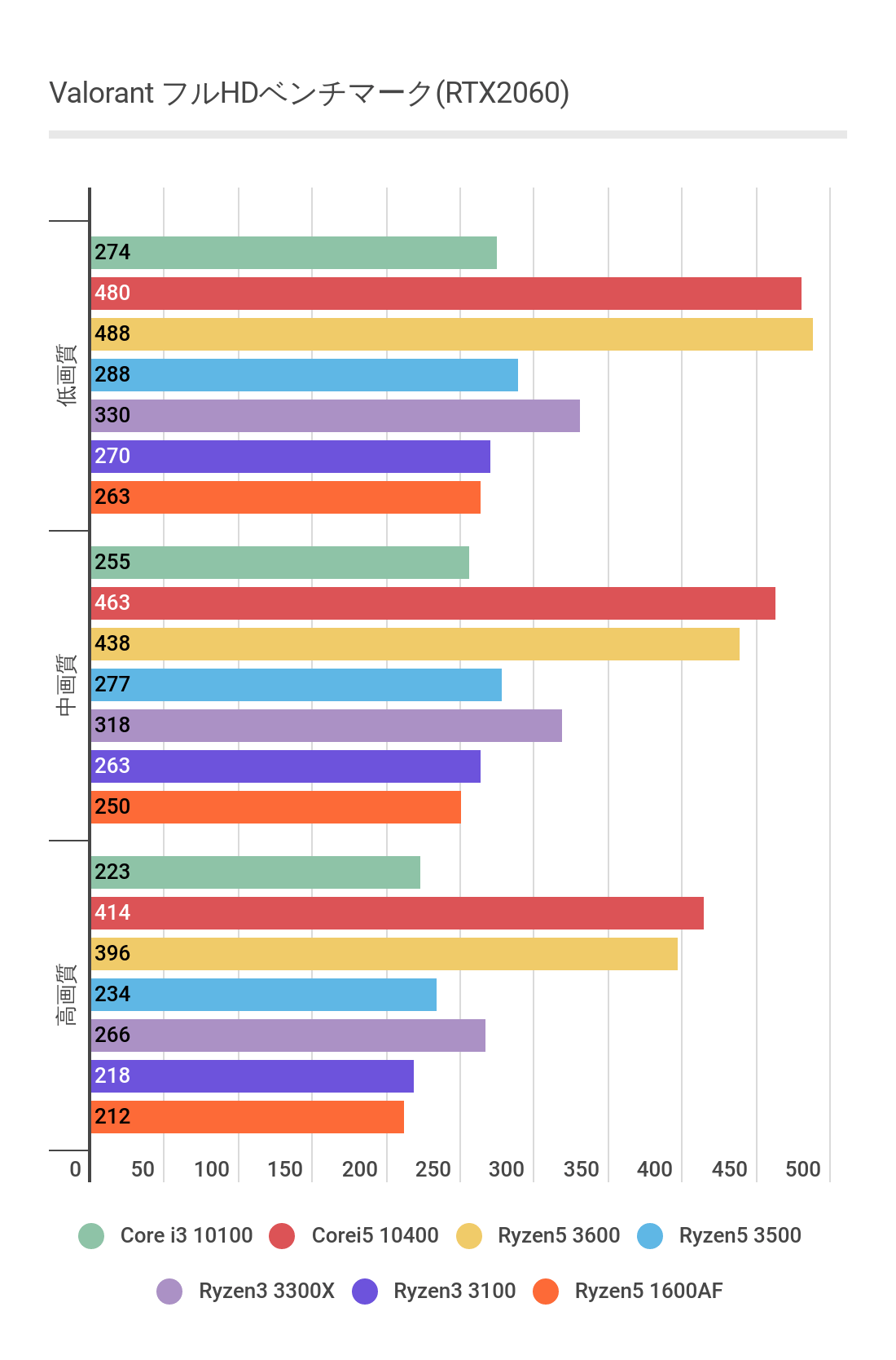 6コア12スレッドあるCore i5 10400やRyzen 5 3600のほうがFPSが高いことがはっきりわかります。